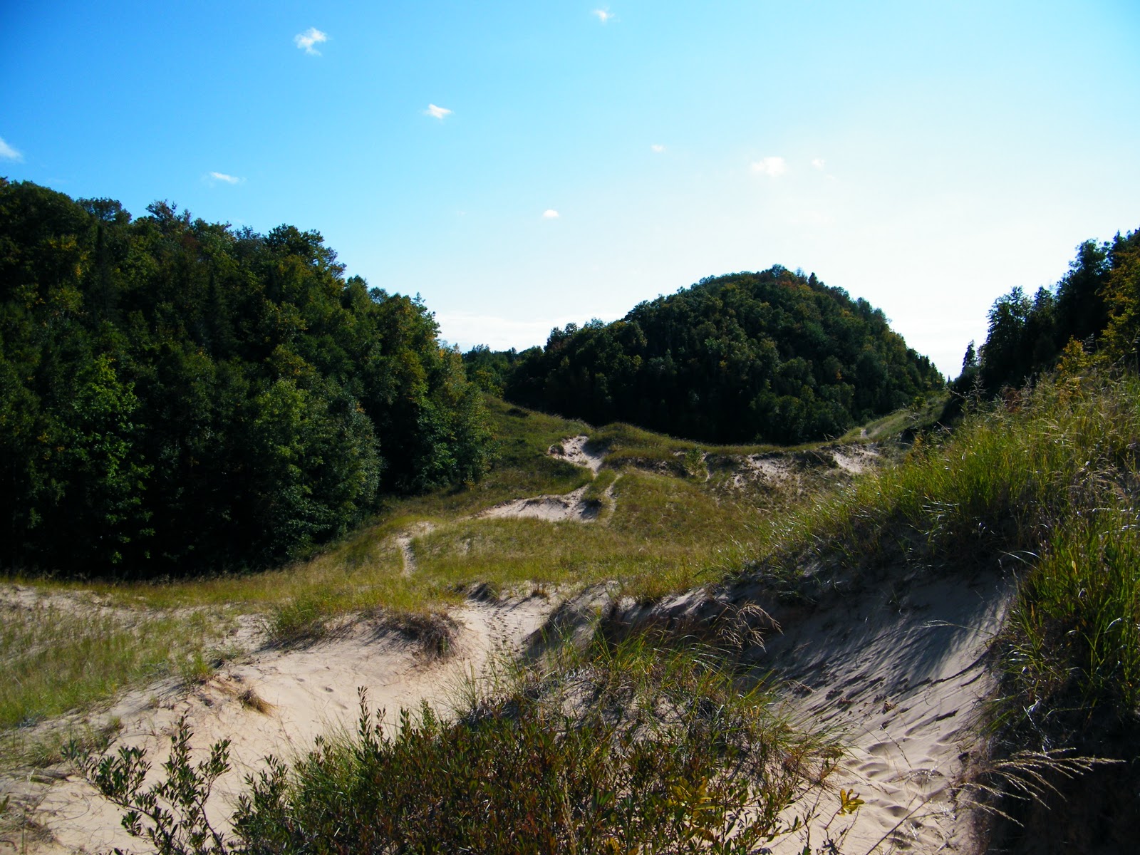 The dunes are surprisingin their size and the fact that they just sort of appear once you leave thewoods. Once you are in the dune area though, let loose! (But be sure to stay onthe paths so the dunes can be enjoyed by future guests) Take the time to explorethe unique landscape. (If you go to the Grand Traverse Land Conservancy websiteyou can download guides for the distinct plants that make their home in thedune environment.)
